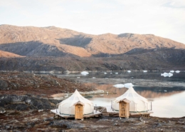 En glampingplads dybt inde i Nuuk-fjorden med 15 luksustelte med hver en dobbeltseng og fremragende udsigt og vandremuligheder.
